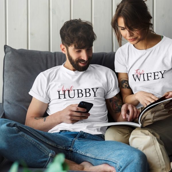 Hubby & Wifey Personalised Couple T-Shirts – Pre-Wedding Photoshoots & Anniversary