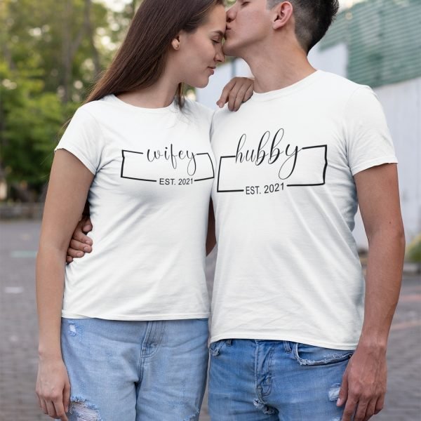 Hubby & Wifey Personalised Couple T-Shirts – Pre-Wedding Photoshoots & Anniversary