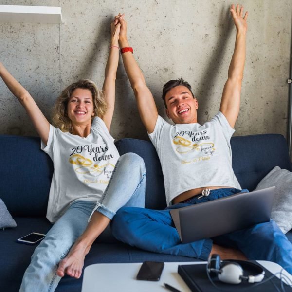 Celebrate the milestones of your marriage with our personalized couple t-shirts. From your first year to your tenth, or any anniversary in between, these custom designs will help you relive the magic of your wedding day. Wear them with pride and showcase your enduring love.